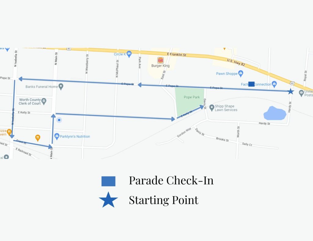 Take Exit 99 West to Hwy 33 then head south into Sylvester.